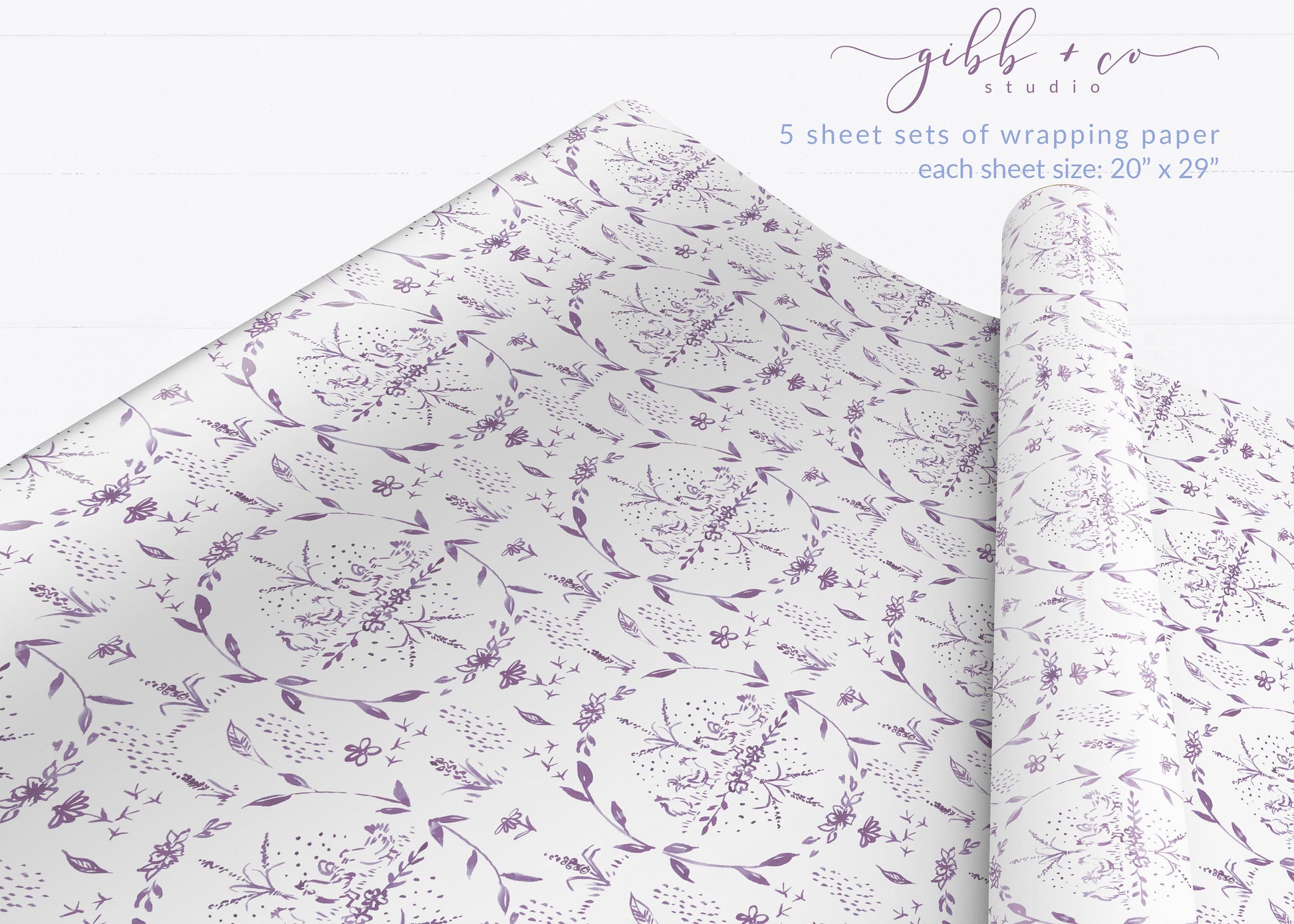 Watercolor whimsical chicken damask illustrated wrapping paper using my watercolor illustrations. Comes in blue or lavender.