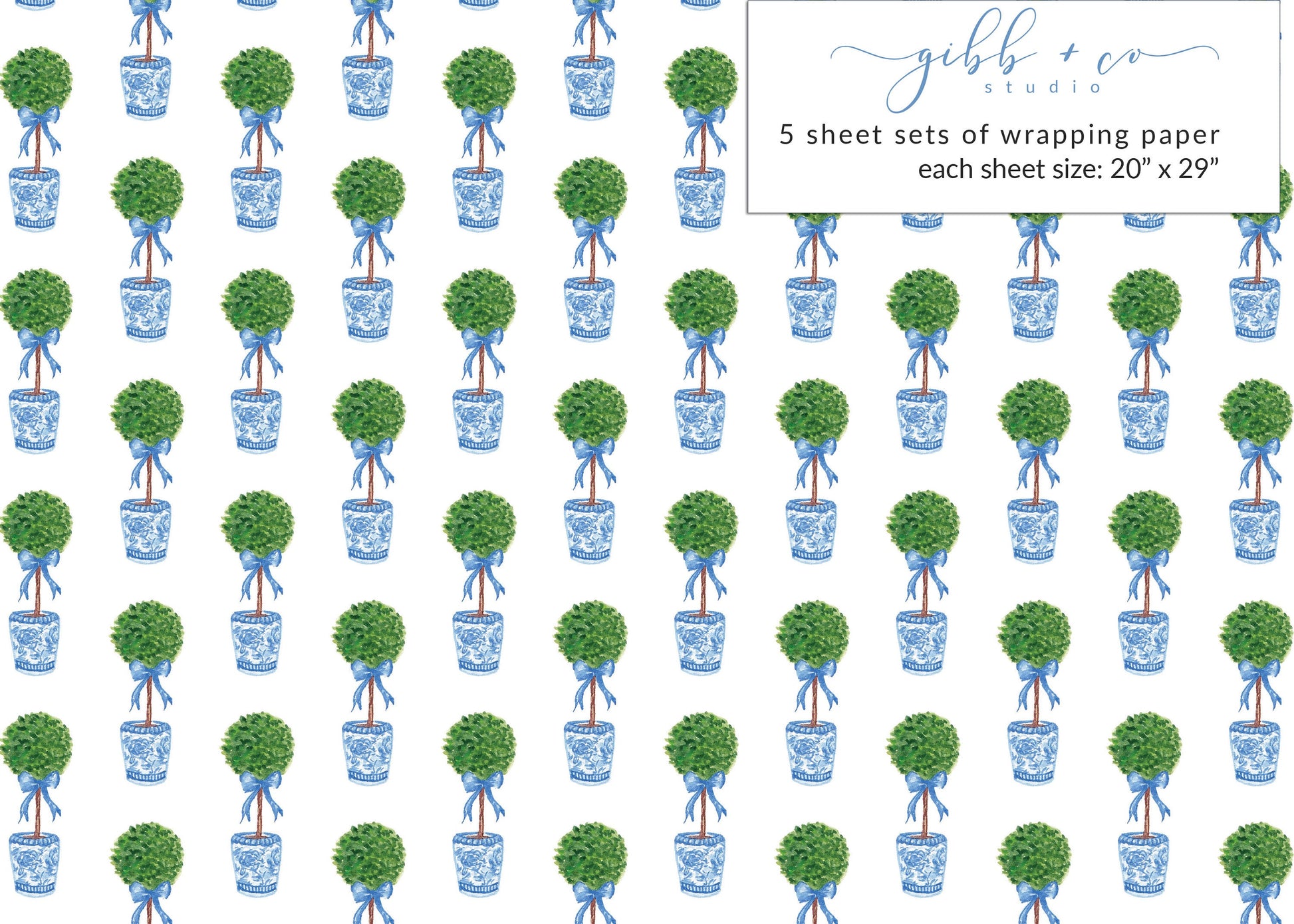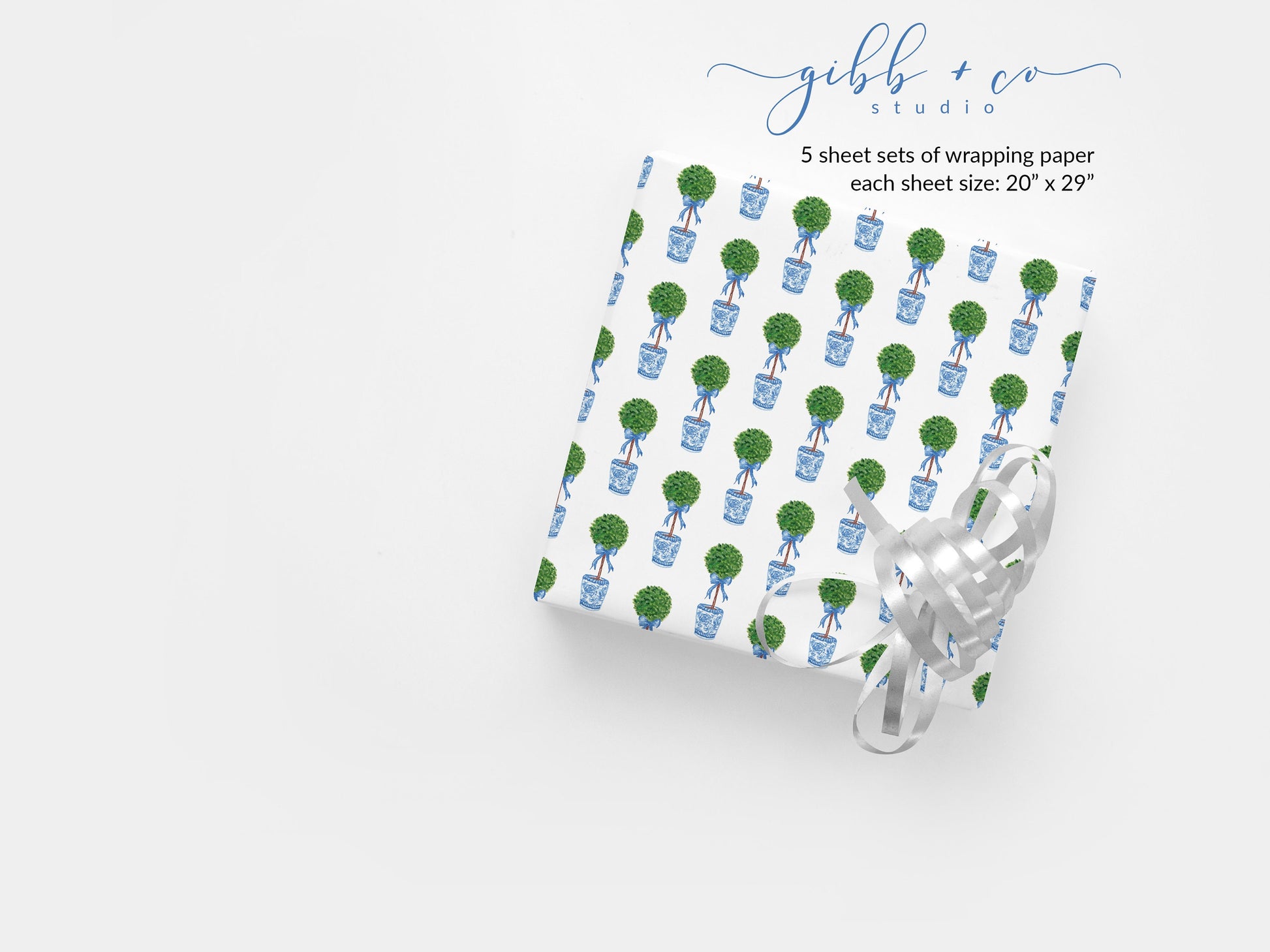 Chinoiserie topiary wrapping paper features my watercolor garden illustration.