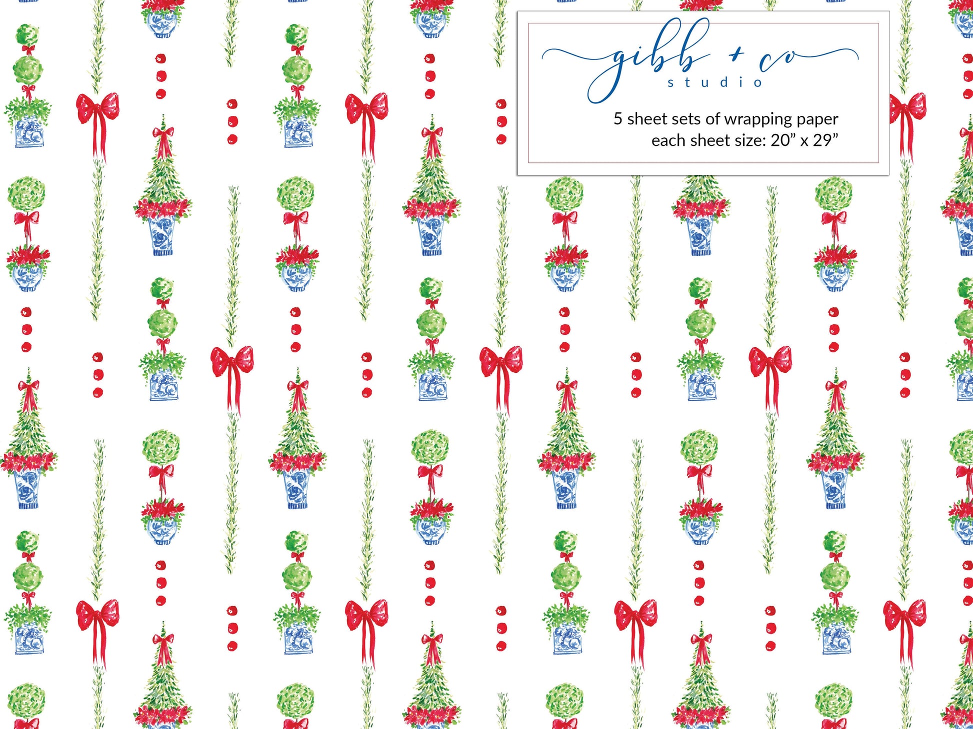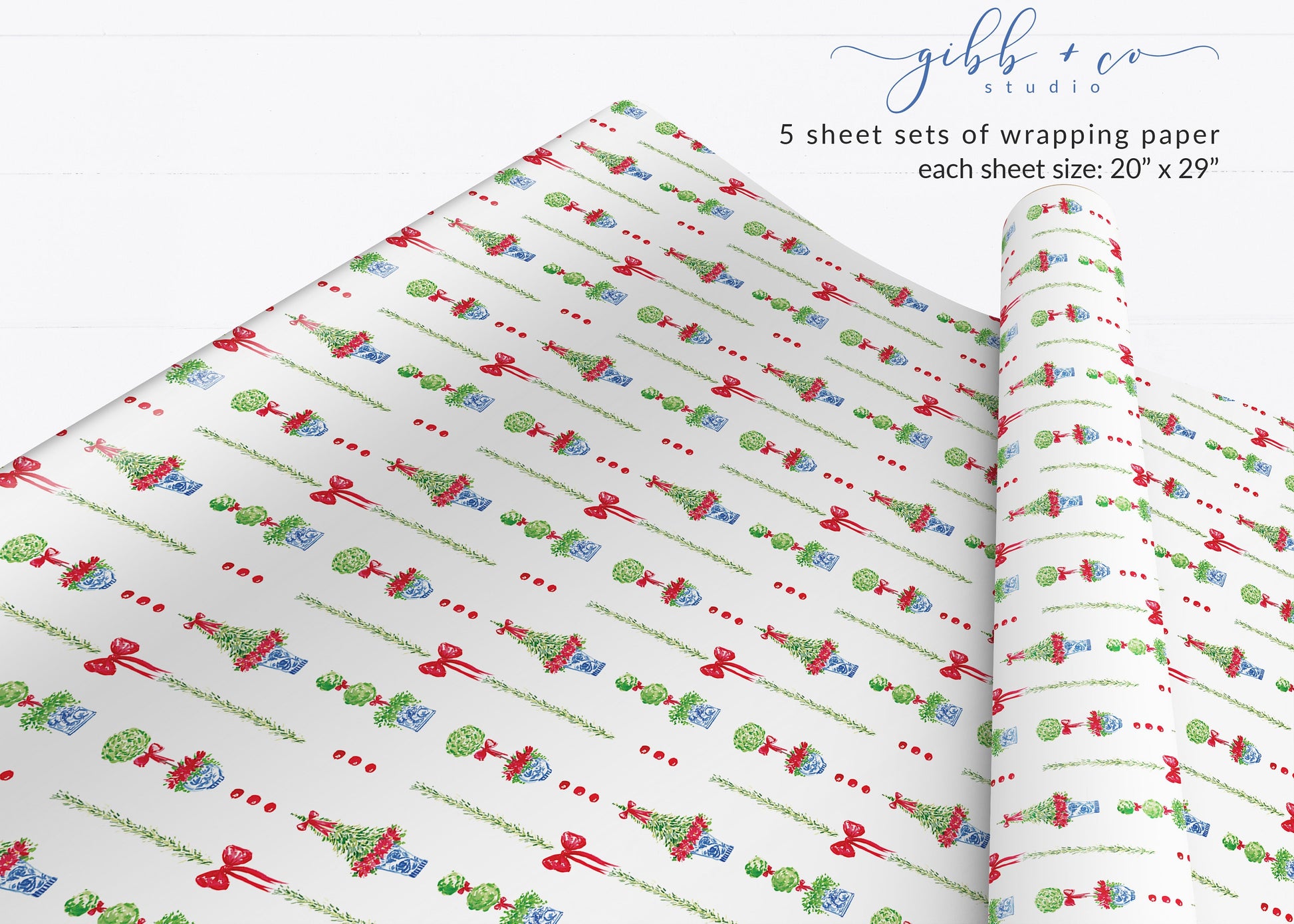 Christmas Chinoiserie Topiary wrapping paper, Christmas wrapping paper, holiday wrapping paper