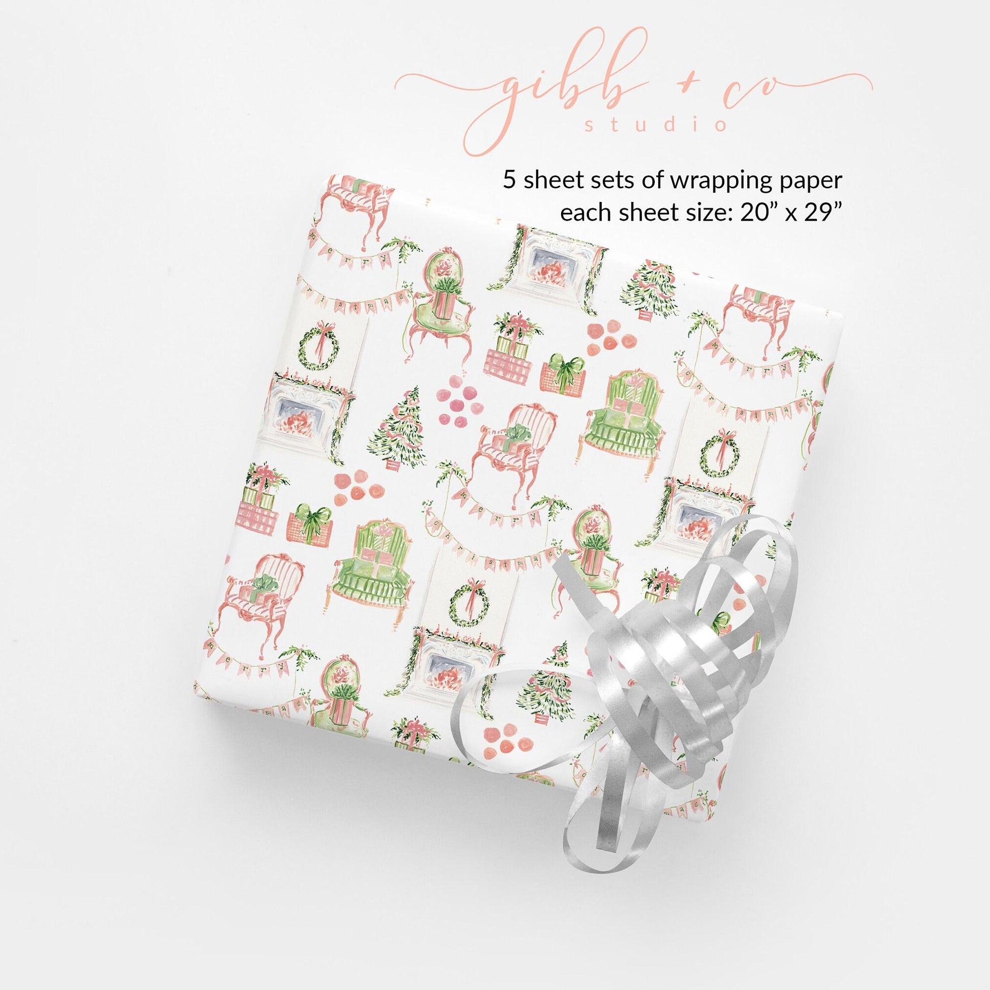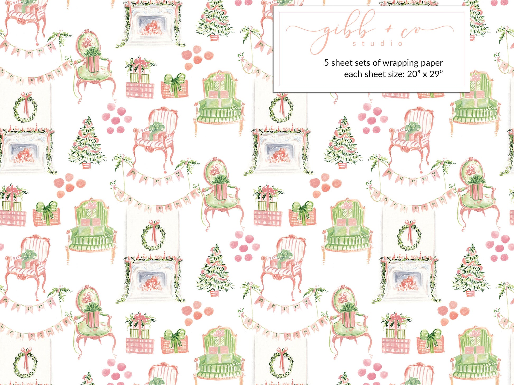Christmas pastel fireplace wrapping paper, Christmas wrapping paper, holiday wrapping paper