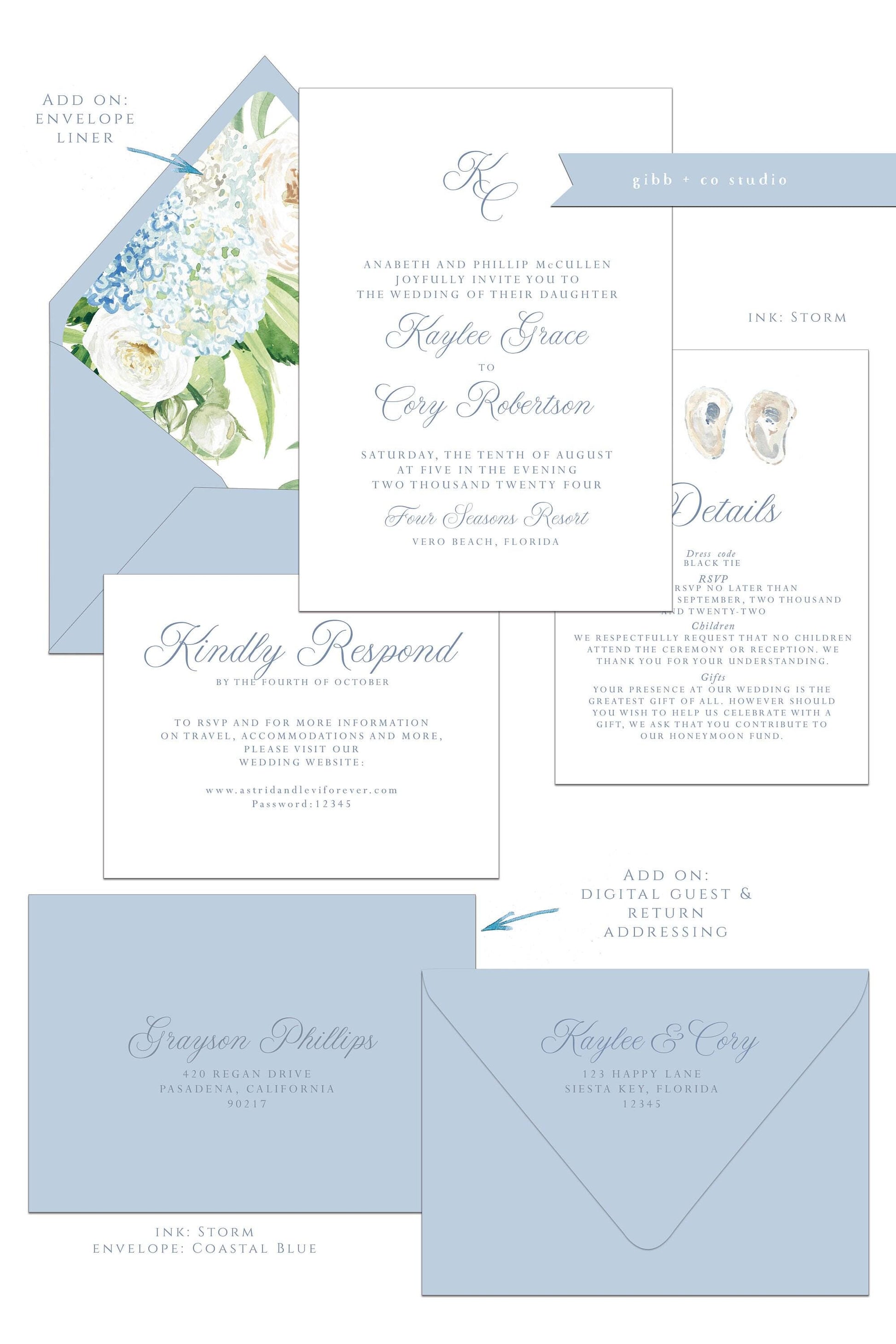 Coastal wedding invitation, blue hydrangea, Coastal wedding, Semi Custom wedding invites, floral watercolor, wedding invites, rsvp, details