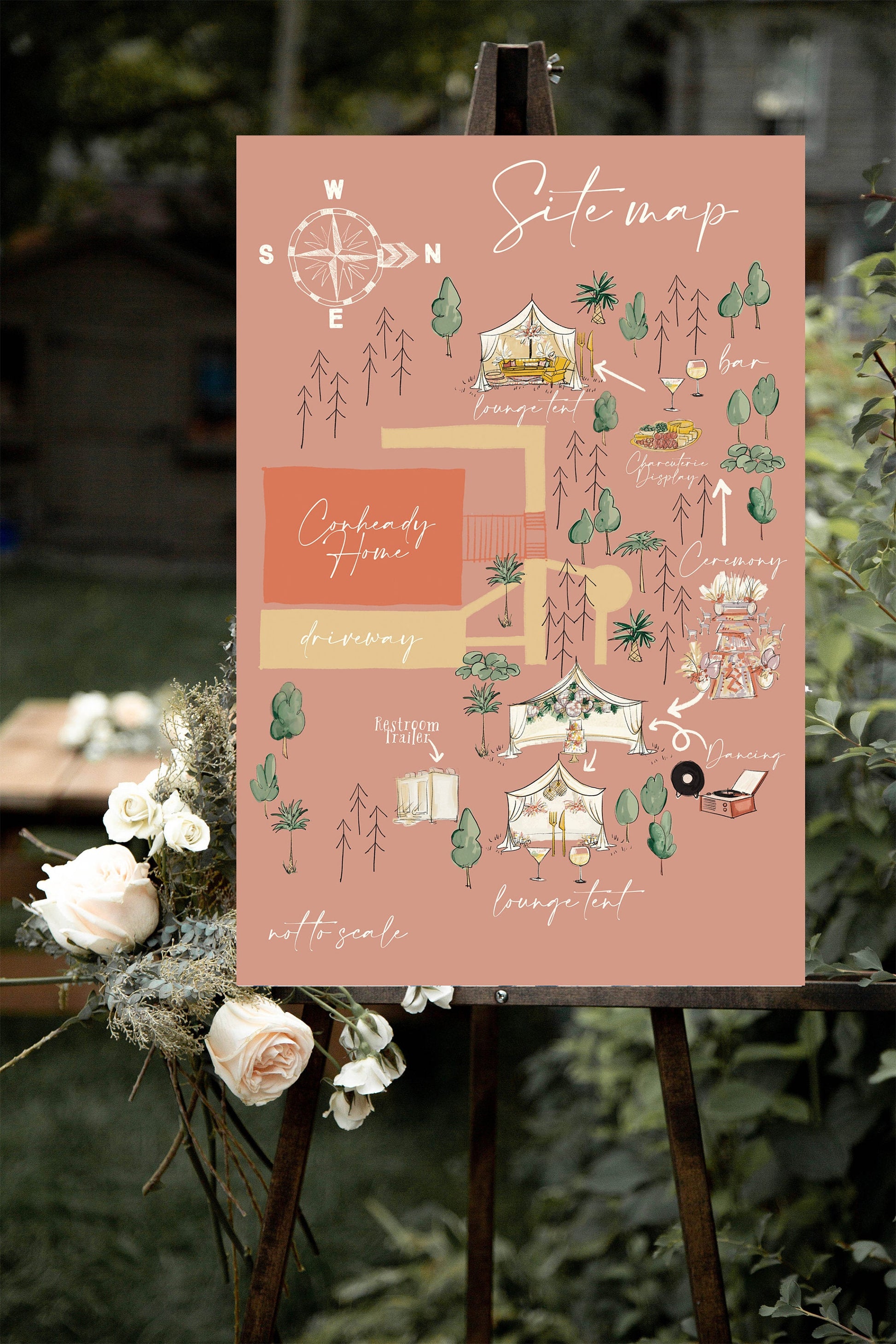 Custom watercolor, destination wedding, illustration, illustrated map, wedding venue, wedding map, city map, venue map, watercolor map