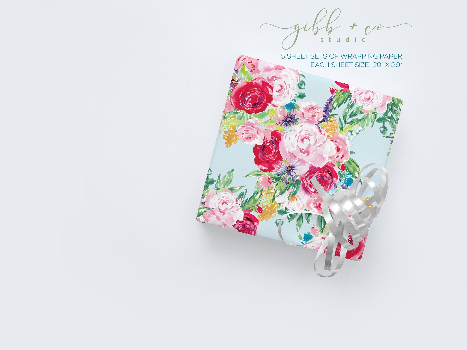 Watercolor floral illustration wrapping paper using my pink and red roses illustrations.