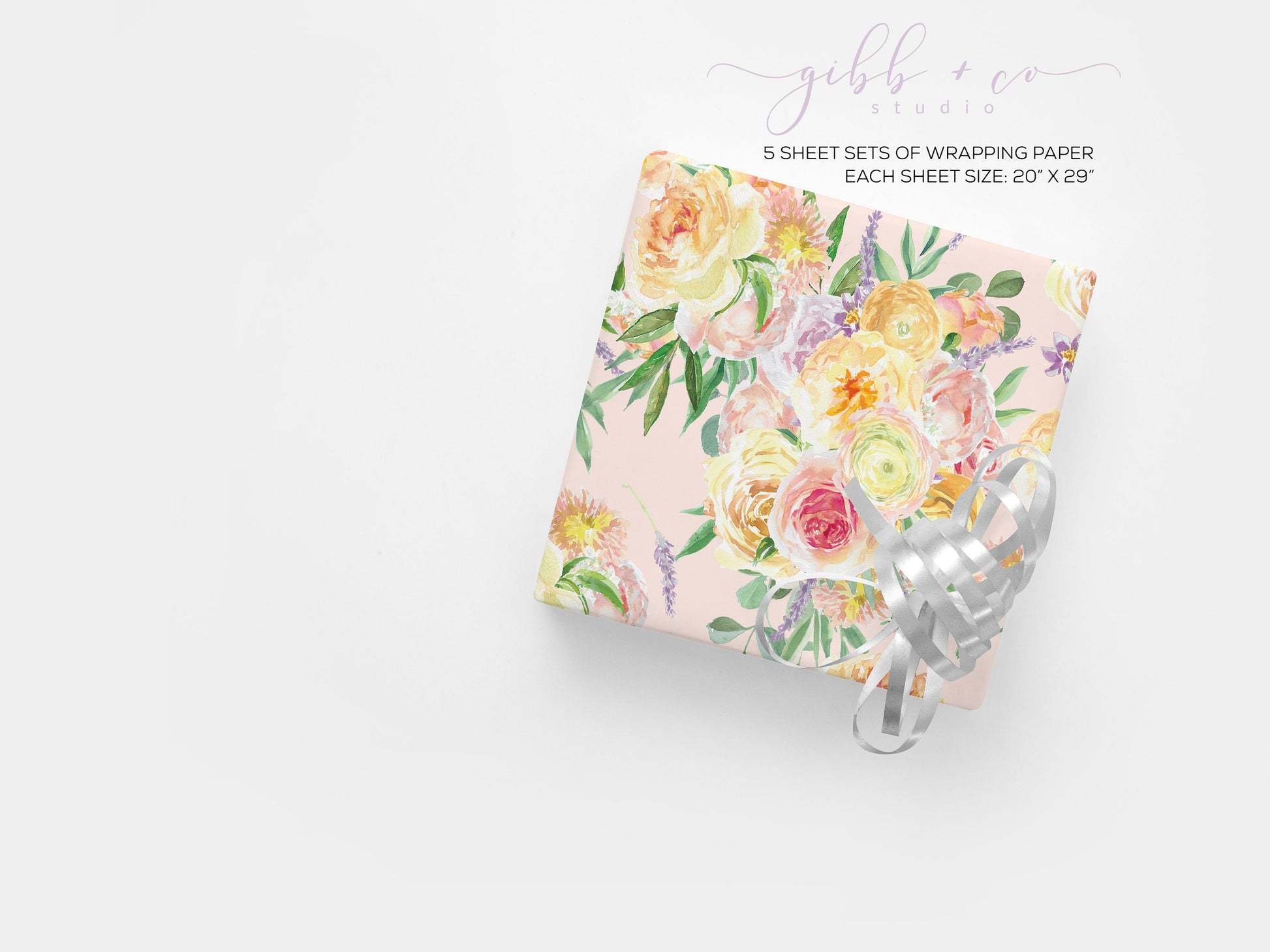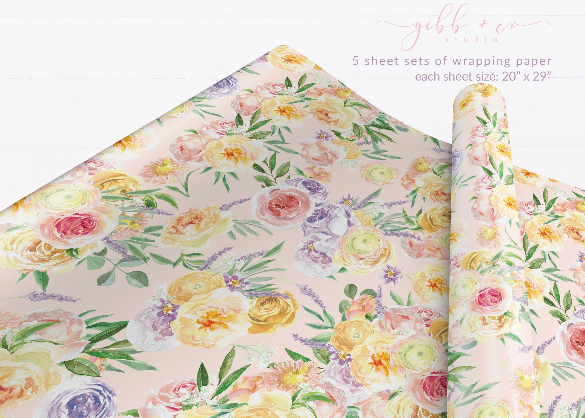 Watercolor floral illustration wrapping paper using my pink and yellow roses illustrations.