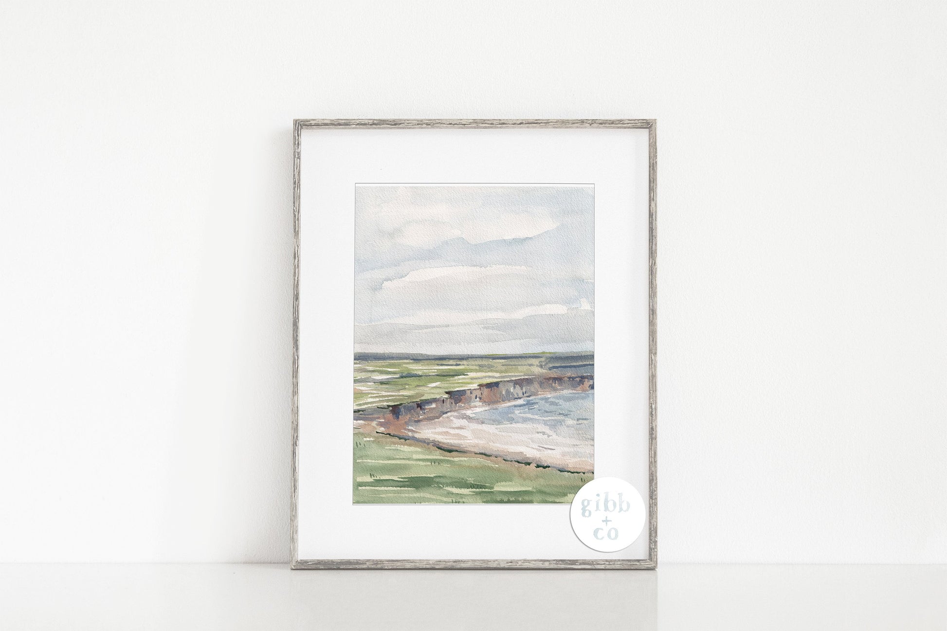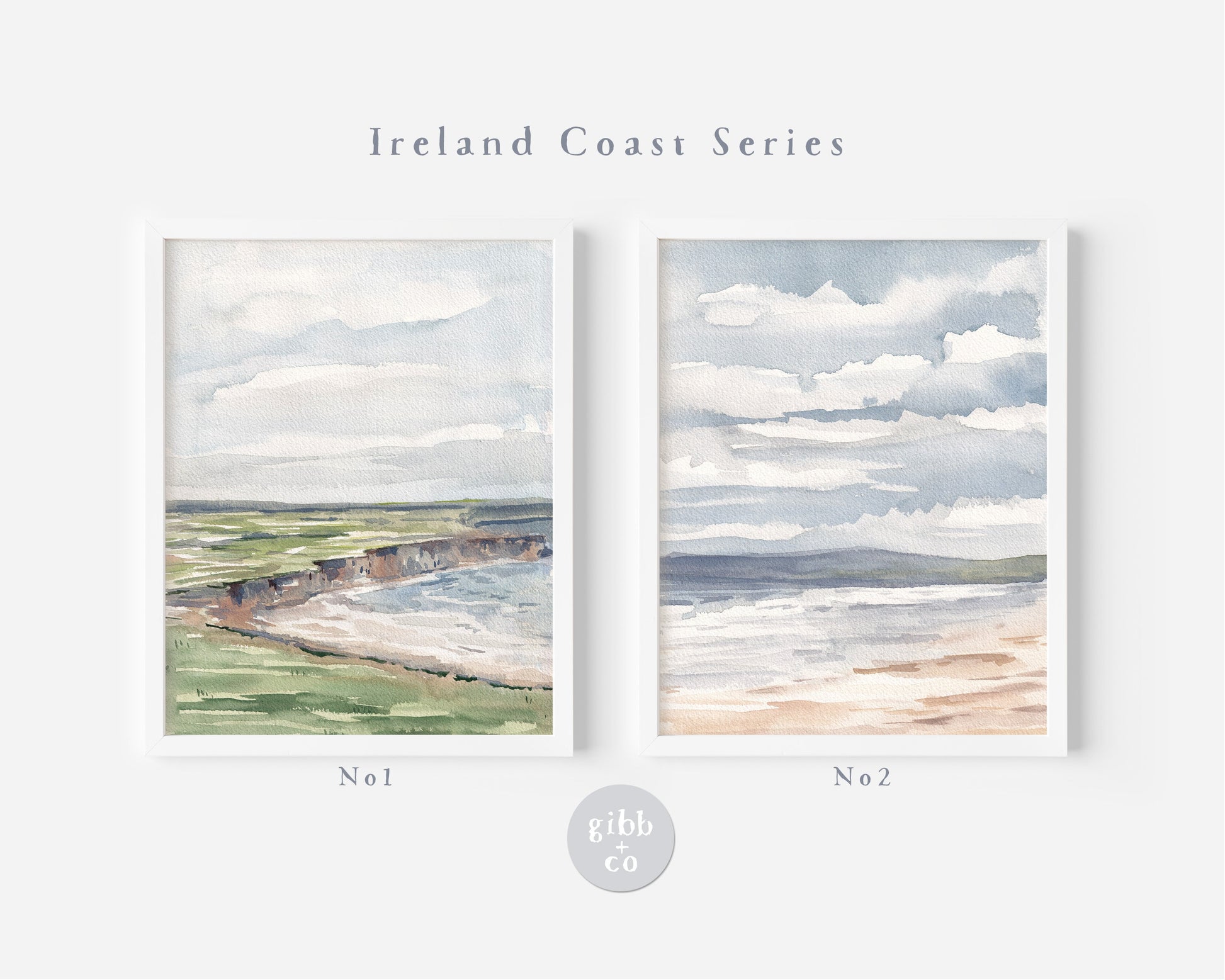 "Ireland Coast No 1 and No 2" whimsical art print for the lover of coastal landscapes and features my original watercolor illustration.
