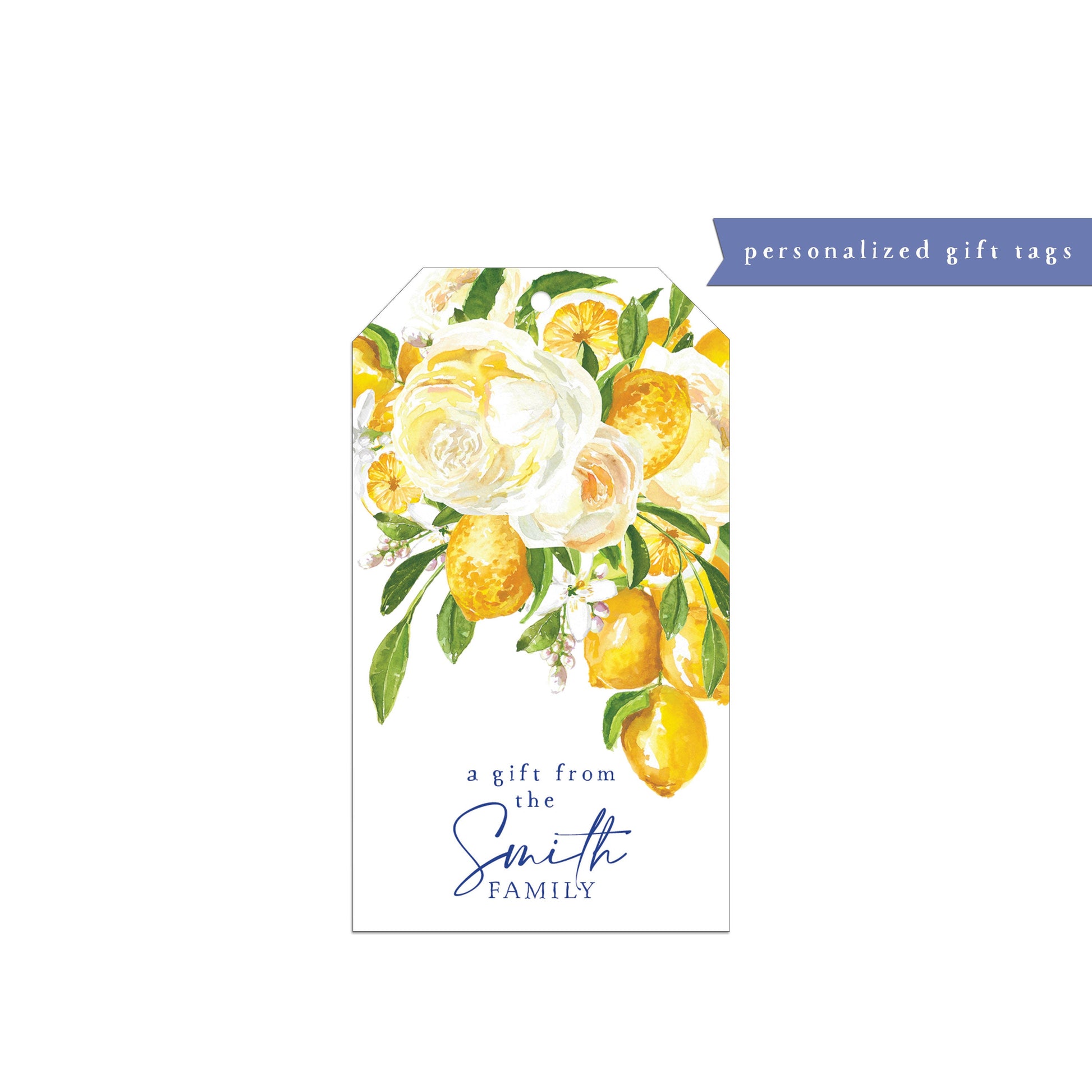 Lemon floral wrapping paper features my watercolor lemon blossoms and tile illustrations.