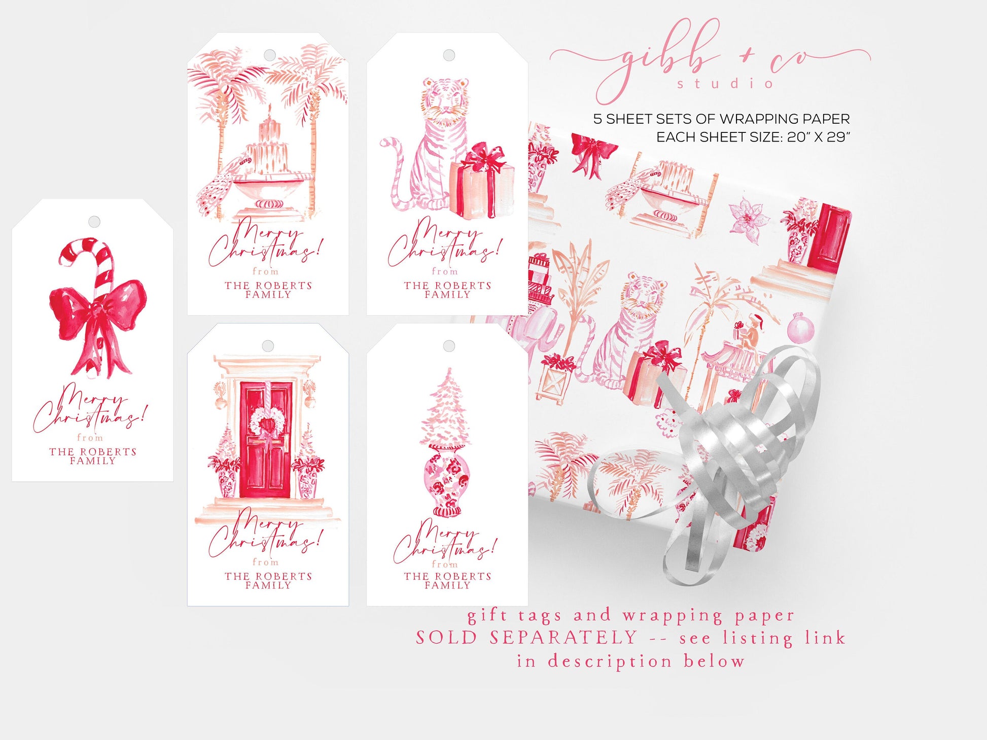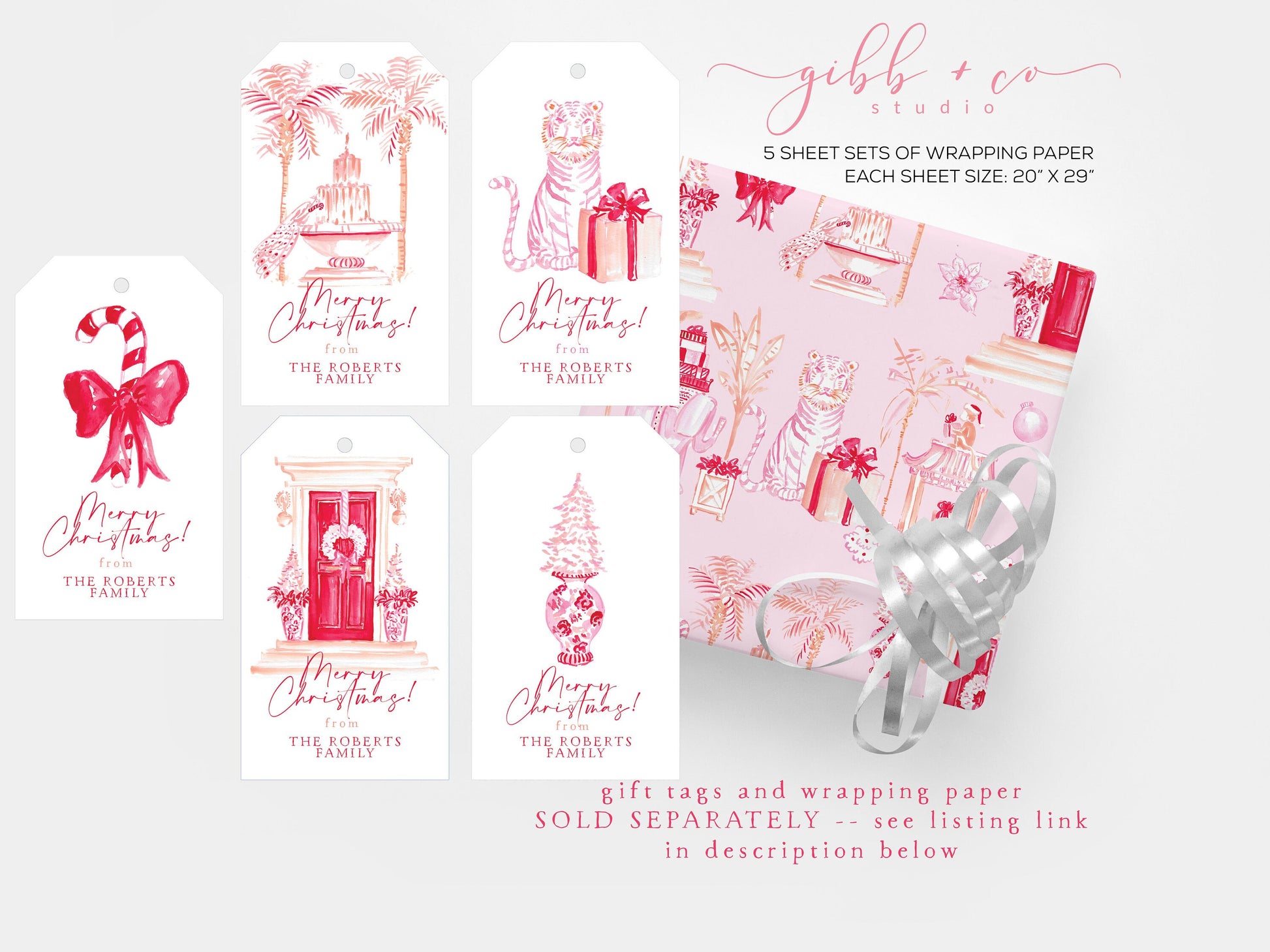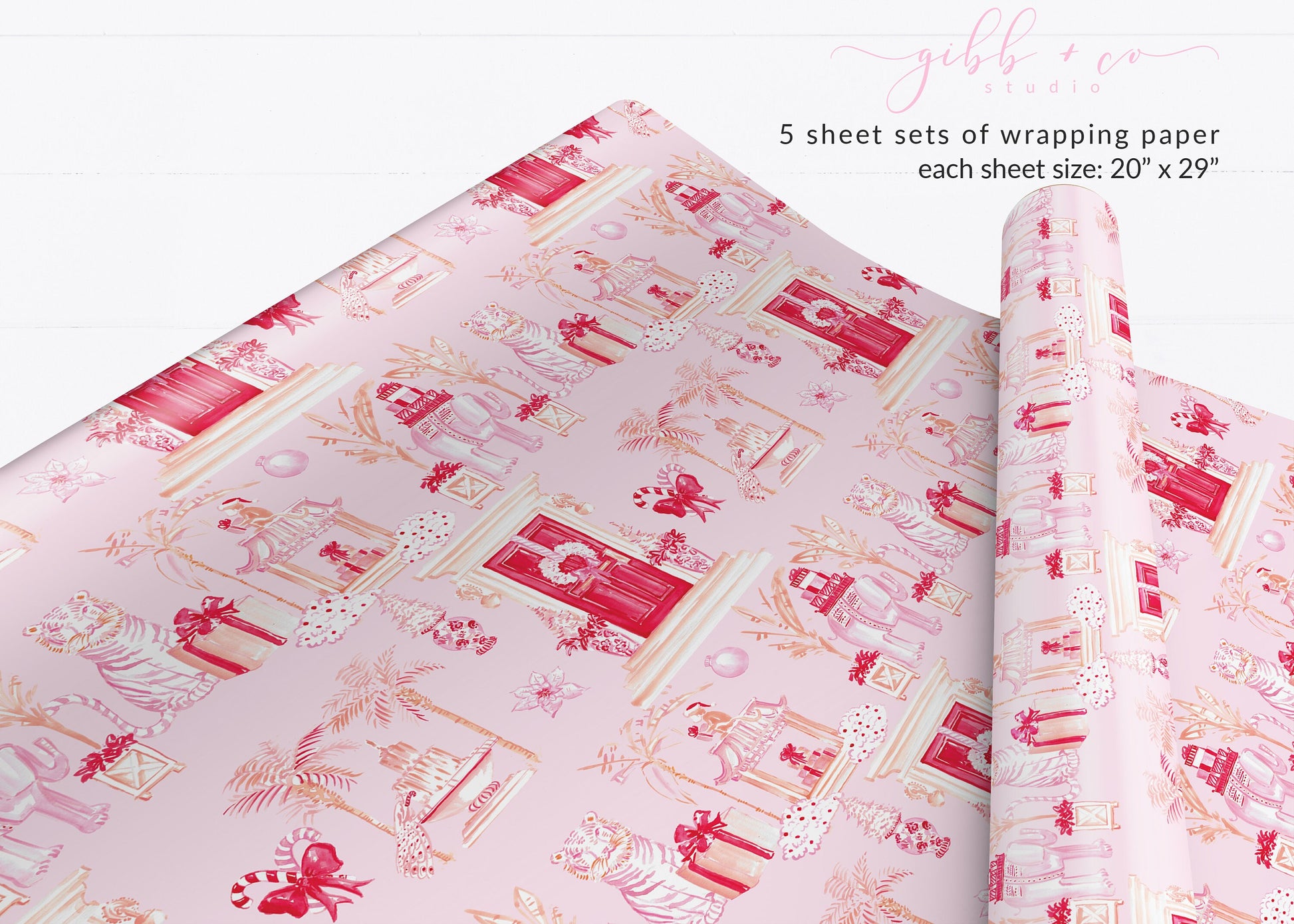 Pink Christmas wrapping paper, pink chinoiserie, Christmas wrapping paper, holiday wrapping paper
