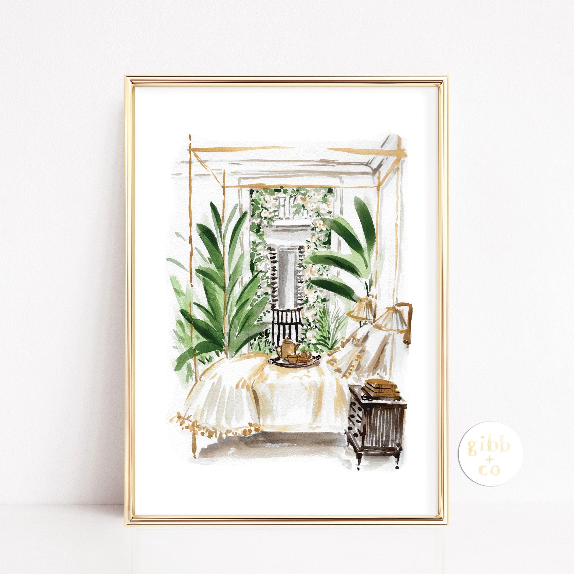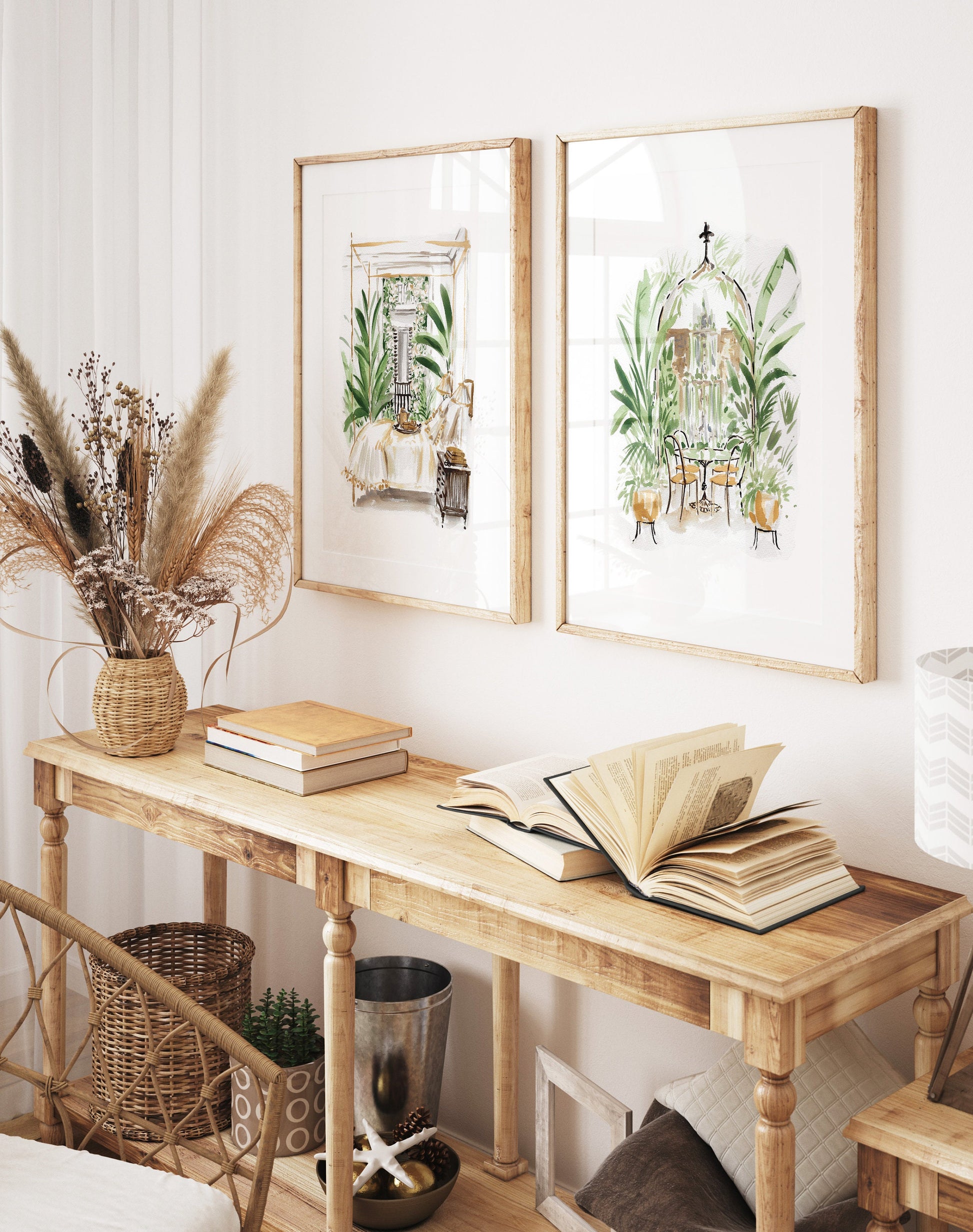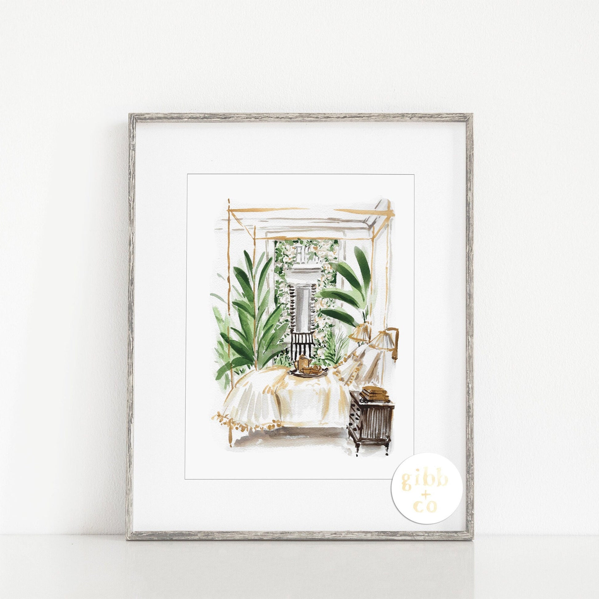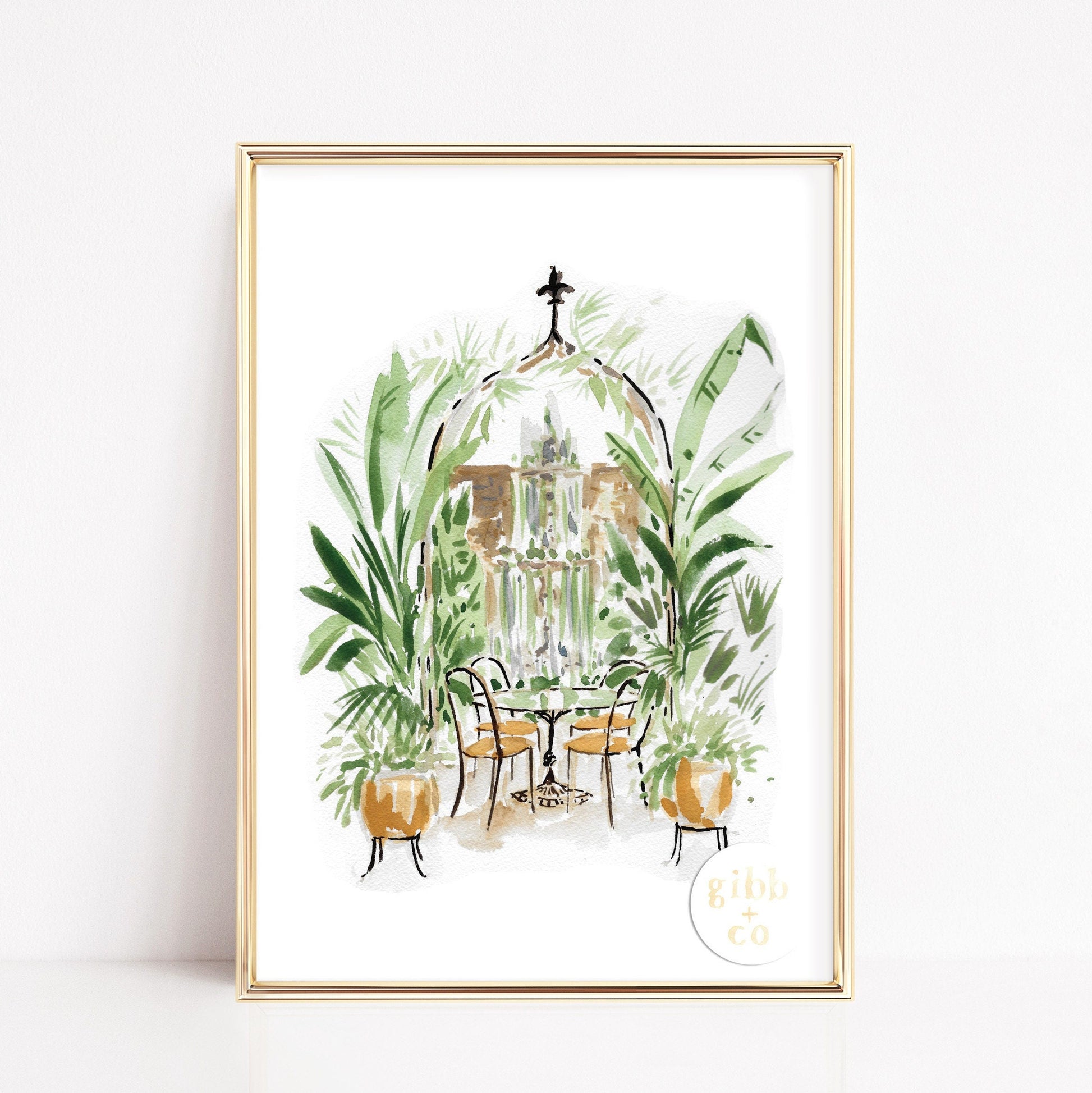 "Weekend Getaway" and "Lush Courtyard" whimsical art prints for the travel lover and features my original watercolor illustration. Inspired by my travels to some lovely southern cities like New Orleans, Charleston, Savannah and more.
